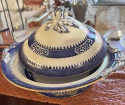 Victorian Era Flow Blue Covered Tureen or Vegetable Dish