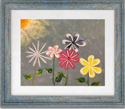 Framed Naive Floral Folk Art Painting