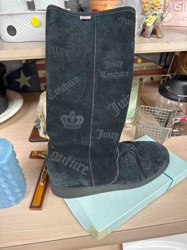 Juicy Couture Black Suede Monogram Tall Boots