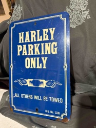 Vintage-Style Harley Parking Only Porcelain Enamel Sign