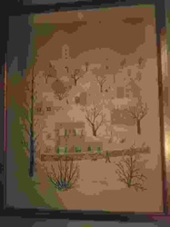 Framed Watercolor Landscape with Figures
