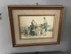 Framed Original Nautical Watercolor Painting signed 'KF'
