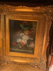 Floral Still Life Painting in Gold Frame