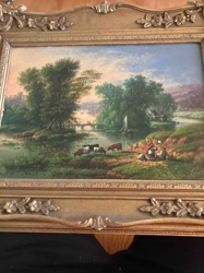 19th-Century Style Pastoral Landscape Painting in Ornate Gilt Frame