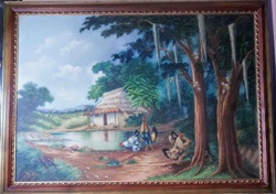 Tropical Landscape with Chickens and Thatched Hut Painting