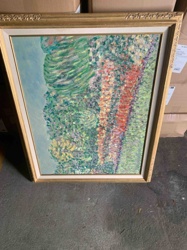 Framed Impressionist Style Garden Scene Painting