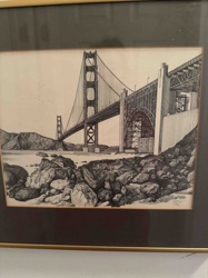 Framed Pen and Ink Illustration of the Golden Gate Bridge