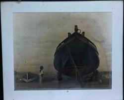 Vintage Ship Portrait with Figure - Hand-Colored Photograph or Tinted Print