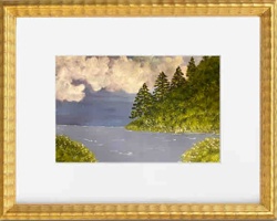 Framed Landscape Painting of a Coastal Forest
