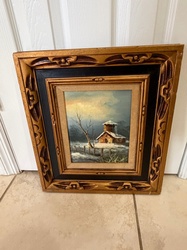 Framed Winter Landscape Oil Painting