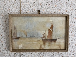 Alan Franks Original Framed Watercolor Painting - Coastal Harbor Scene