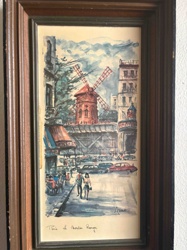Mid-Century Parisian Street Scene Watercolor Painting - 'Paris Le Moulin Rouge'