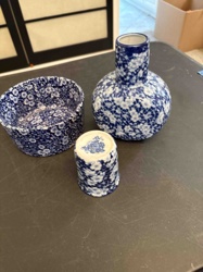 Vintage Blue and White Calico Floral Transferware Sake Set