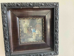 Framed Genre Scene Oil Painting