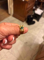 Vintage Gold Geometric Lattice Ring with Emerald and Accent Diamonds