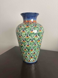 Mexican Talavera Pottery Vase with Plume Pattern