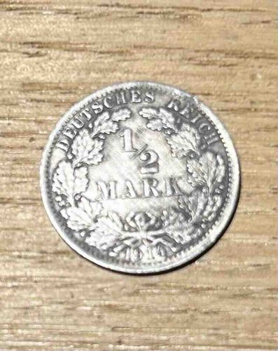1914 German Empire 1/2 Mark Silver Coin