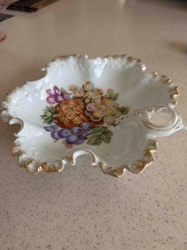 Hand-Painted Porcelain Fruit Bowl with Gilded Ruffled Rim