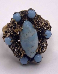 Vintage Czechoslovakian Gilt Brass and Slag Glass Filigree Ring
