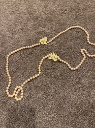 Vintage Faux Pearl Opera Length Necklace with Gilt Leaf Accents