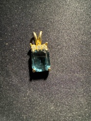 Emerald-Cut Aquamarine and Diamond Pendant in Yellow Gold