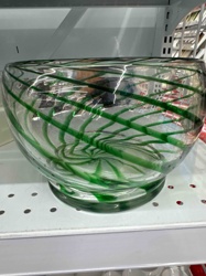 Hand-Blown Art Glass Bowl with Green Spiral Cane Decor
