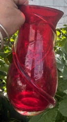 Ruby Red Blown Glass Vase with Applied Spiral Trail