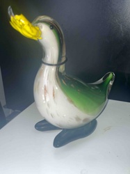 Murano Style Hand-Blown Aventurine Glass Duck Figurine