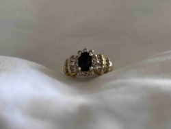 14K Gold Oval Sapphire and Diamond Accent Ring