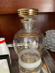 Mid-Century Etched Glass Decanter with Gold Gilt Accents