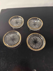 Vintage Crystal Sunburst Glass Coasters with Gold Rims - Set of 4