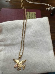 14K Two-Tone Gold Soaring Eagle Pendant on Rope Chain Necklace