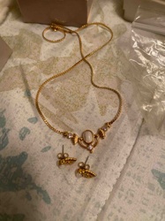Take a clear photo of your Gold Tone Rhinestone Fringe Necklace And Bracelet Set and upload it to our platform. One photo is all you need.