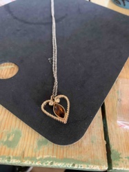 Vintage Gold-Tone Heart Pendant Necklace with Amber-Colored Marquise Stone