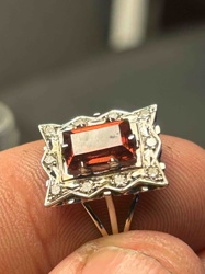 Vintage Emerald-Cut Garnet and Diamond Halo Ring