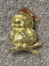 Vintage Gerry’s Gold-Tone Christmas Owl Brooch