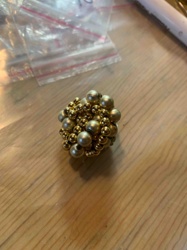 Vintage Faux Pearl and Gold-Tone Beaded Cluster Ring