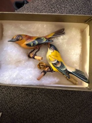 Vintage Hand-Carved and Painted Wooden Bird Pins