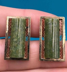 Vintage Gold-Tone and Nephrite Jade Cufflink