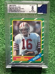1986 Topps #156 Joe Montana Beckett Graded Card with 1982 Pro Bowl Game-Used Patch