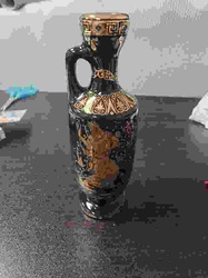 Greek Black Glaze Hand-Painted Ceramic Lekythos-Style Vase
