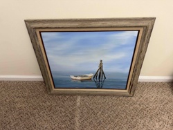 Modern Representational Maritime Oil or Acrylic Painting in Weathered Wood Frame