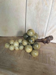 Alabaster Grape Cluster Sculpture with Natural Wood Stem