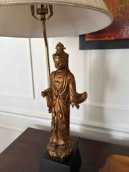 Gilt-Bronze or Composite Guanyin Figural Table Lamp