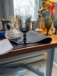 Tiffin Glass Company 'Kings Crown' Pattern Smoked Gray Wine Goblet