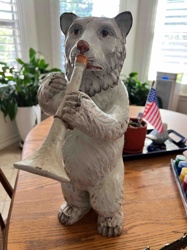 Vintage Black Forest Style Painted Wood Musical Bear Figurine