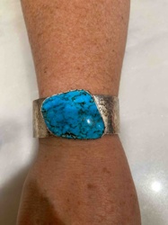 Frank Everitt Sterling Silver Hammered Turquoise Cuff Bracelet