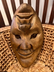 Folk Art Hand-Carved Wood Burl Face Mask Relief Sculpture