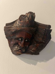 Folk Art Hand-Carved Wood Burl Face Mask Relief Sculpture