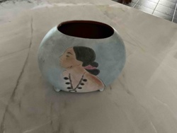 Hand-Painted Folk Art Ceramic Ovoid Vessel